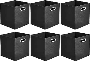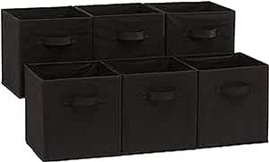 Amazon Basics – Cubos de almacenamiento de tela plegables con asas, 26,6 x 26,6 x 27,9 cm, color negro, paquete de 6 unidades.