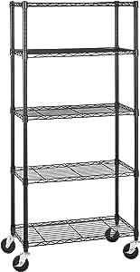 La Estantería de 5 Baldas de Amazon Basics con Ruedas es una solución de almacenamiento versátil y práctica.